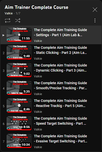 Valkye a réalisé une série de vidéos pour Kovaaks et Aimlab, avec une explication détaillés du but et de la façon de pratiquer ces scenarios (https://www.youtube.com/@Valkie).